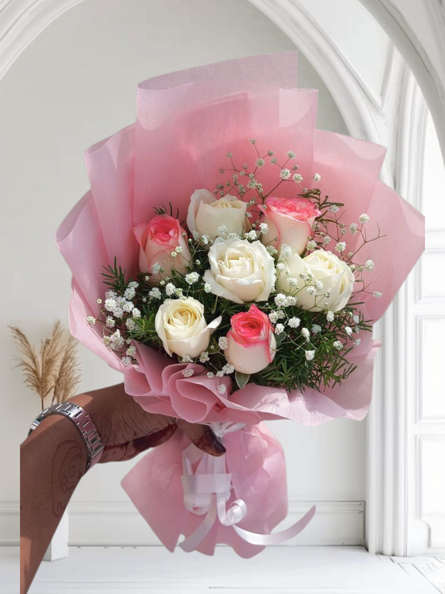 4 white roses