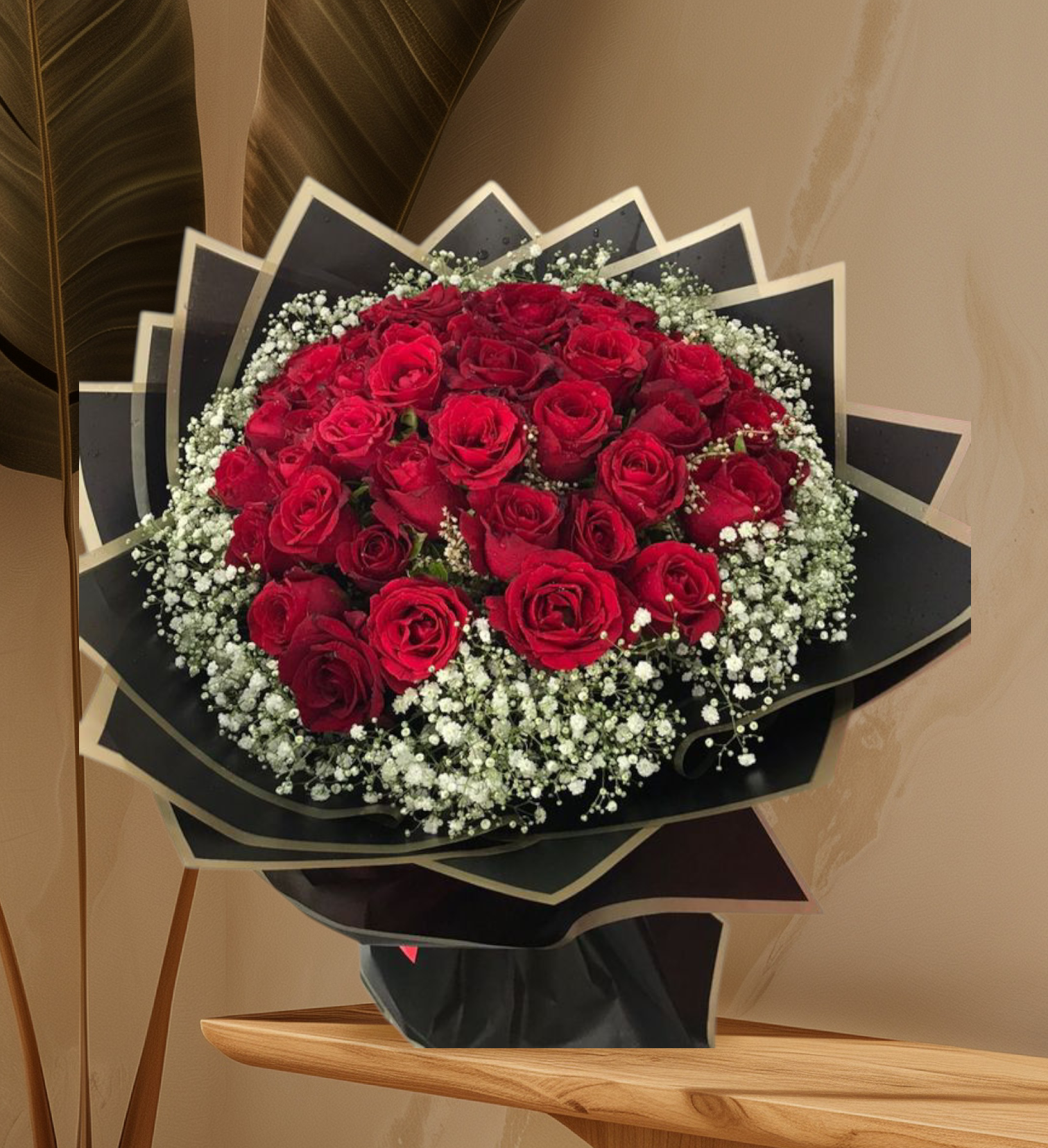 40 red roses with gypsy filler